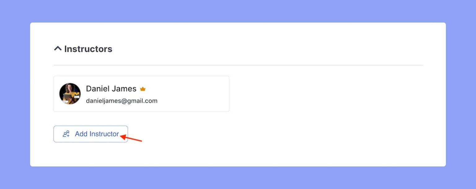 This section allows you to view the instructor names and also allows you to add more instructors to the course. If you have the Multi-Instructor, you will be able to search for, and add more instructors to the same course. They can then edit, moderate, and add their own content to this course.