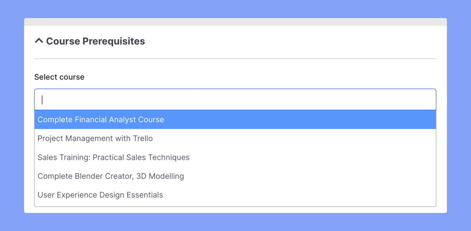 For example, if you have two courses, “Basics of Programming Languages” and “Advanced Programming Languages,” you can set the “Basics of Programming Languages” as a prerequisite for the “Advanced Programming Languages” course, ensuring that students have a thorough understanding of the basics before moving on to more complex topics.