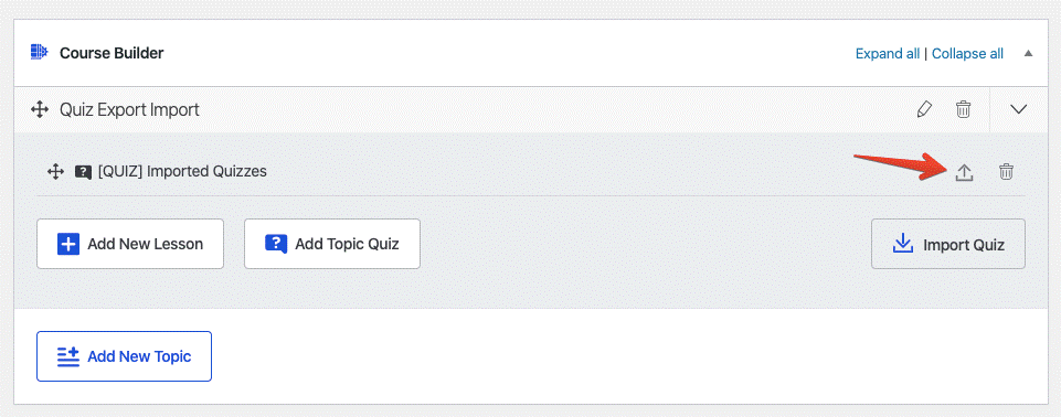 To get started, from the course builder, navigate to a topic and then click on the “+Quiz” button.