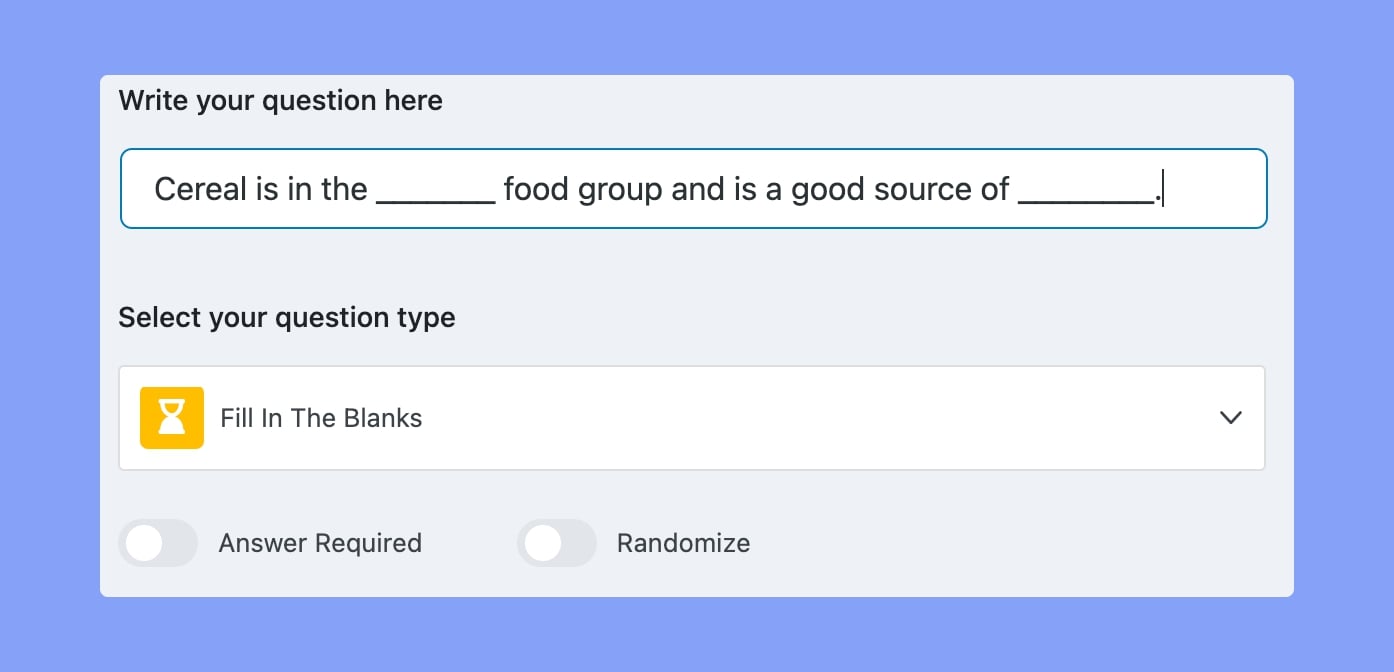 Randomize: Toggle this if you want this question’s order to be randomly shuffled among the list of questions.