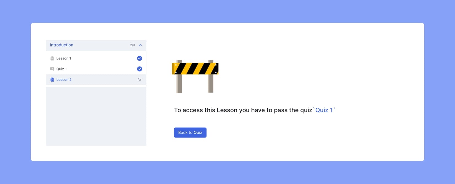 If they fail a quiz that requires passing and attempt to access the next lesson, they’ll now get a message like this: