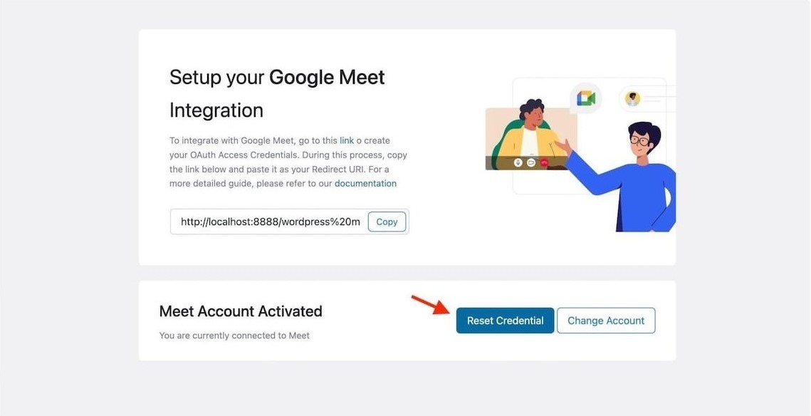 Should the need arise, you can also invalidate your current Google Meet credential using the Reset Credential button.